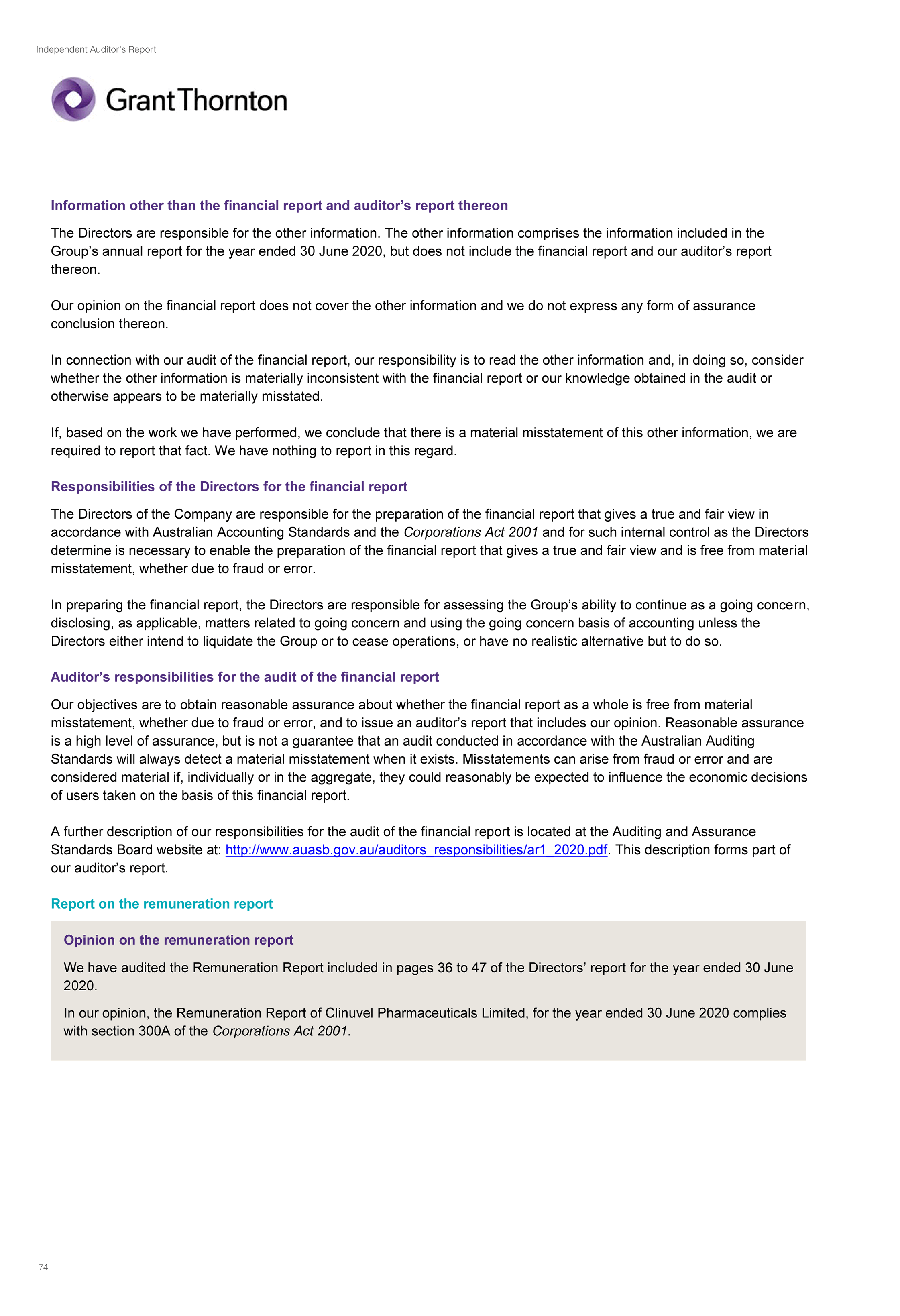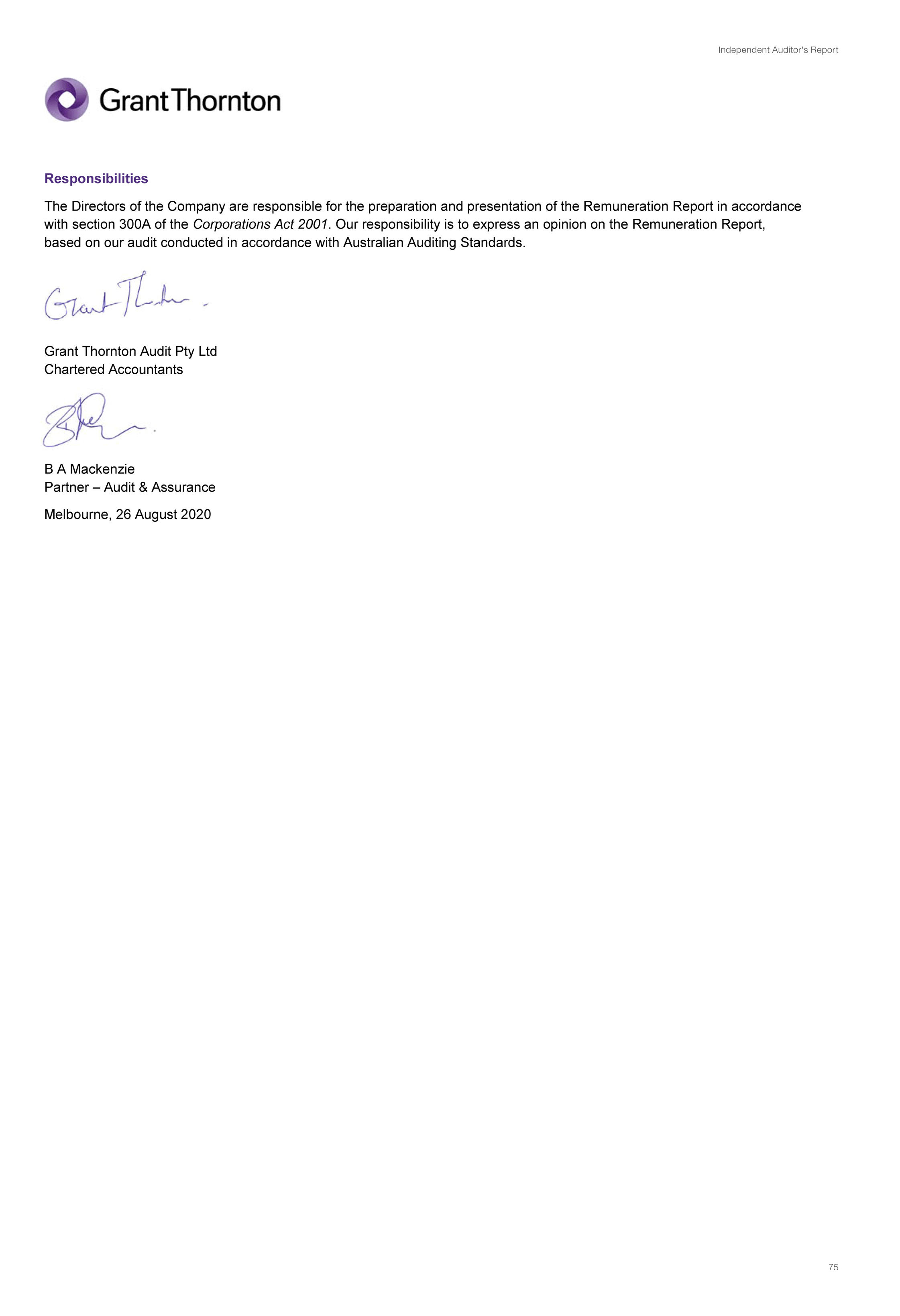- the audited remuneration disclosures set out in pages 36 to 47 of the Directors Report comply with Section 300A of the Corporations Act 2001.