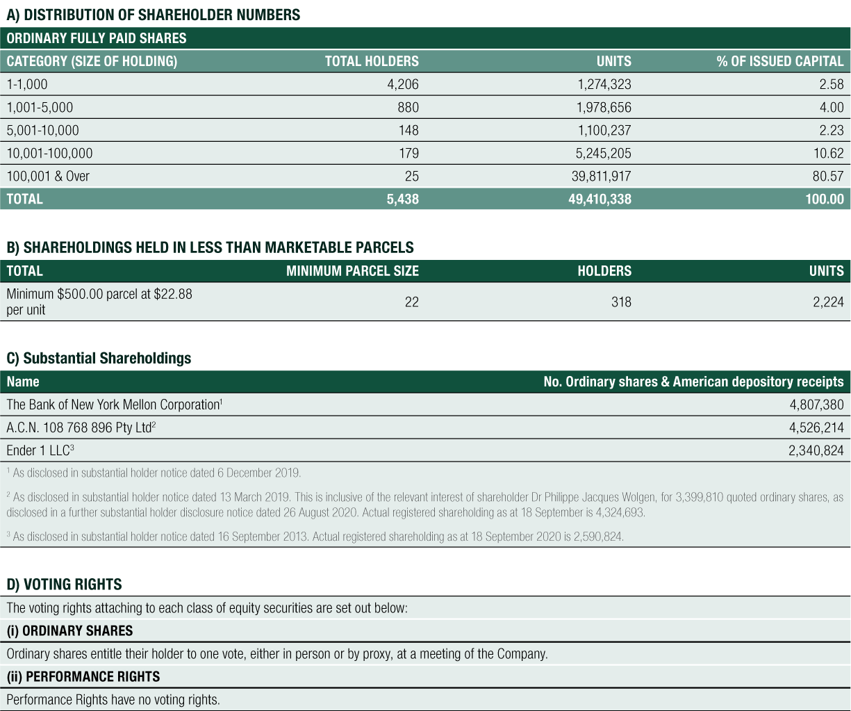 Additional information as at 18 September 2020 required by the ASX and not shown elsewhere in this report is as follows: