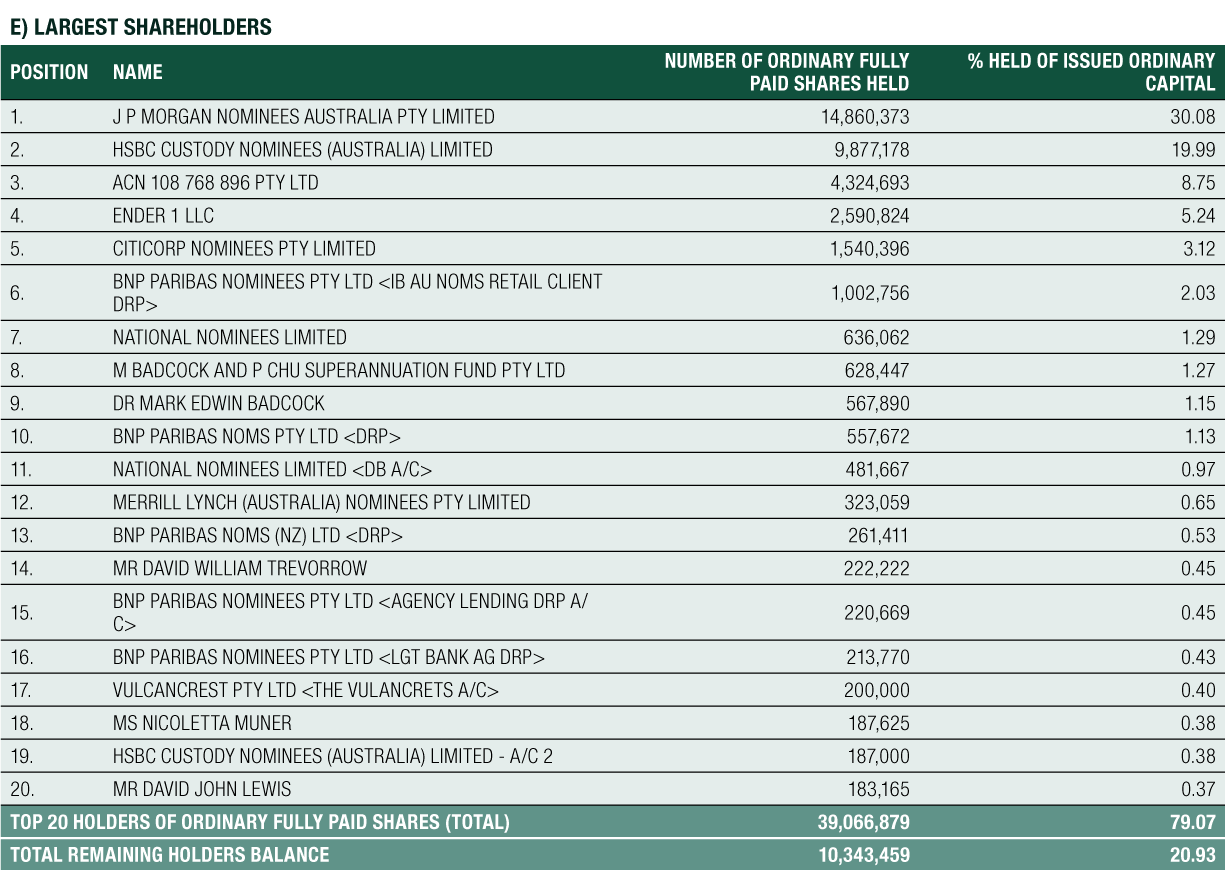 E) Largest shareholders